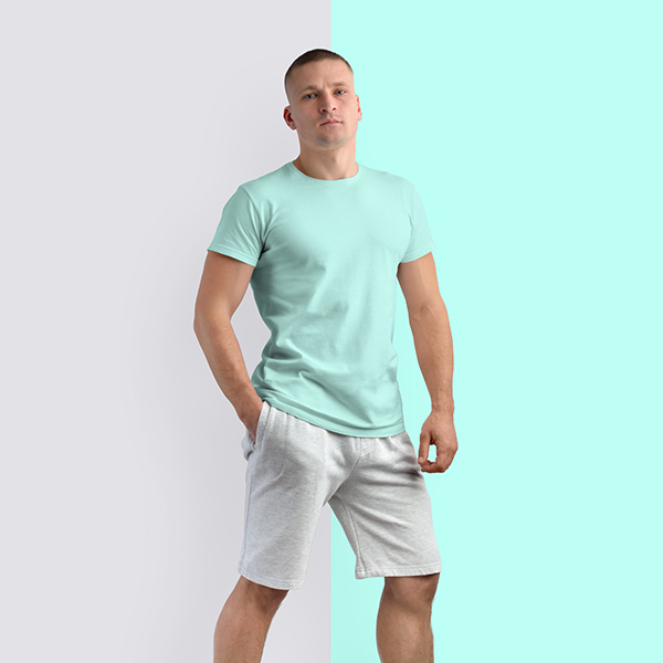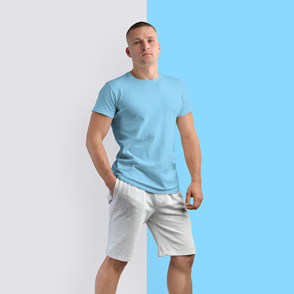 Half Sleeves Crew Neck: Aqua Blue