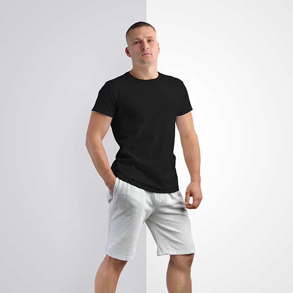 Half Sleeves Crew Neck: Black