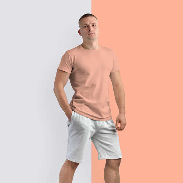 Half Sleeves Crew Neck: Peach
